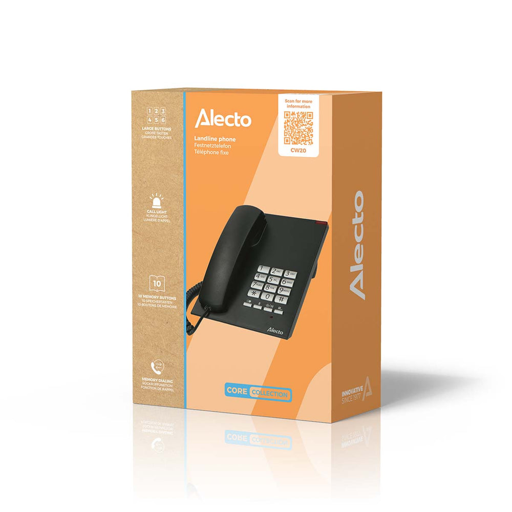 Alecto – de fabrikant van de CW20 huistelefoon – staat bekend om zijn hoge kwaliteitsnormen. Deze telefoon is ontwikkeld en uitgebreid getest in onze eigen Research & Development-faciliteiten in Nederland. Heeft u vragen over het gebruik, dan vindt u alle informatie op onze website en in de meegeleverde handleiding. Daarnaast helpt onze klantenservice u graag via e-mail en telefoon.