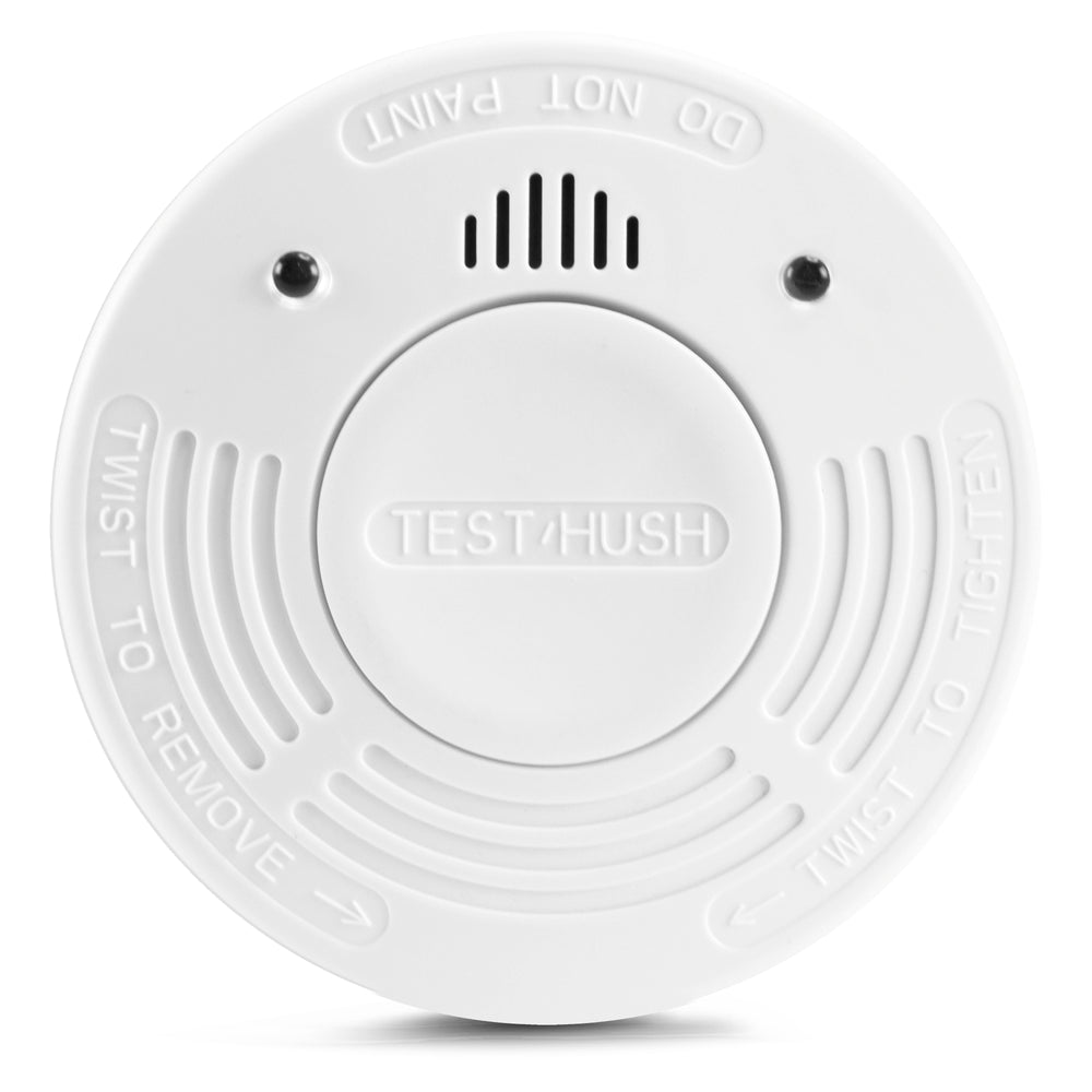 Met de testknop controleer je de werking. De hushfunctie dempt een ongewenst alarm kort, bijvoorbeeld bij kookdampen. Daarna staat de melder automatisch weer paraat.