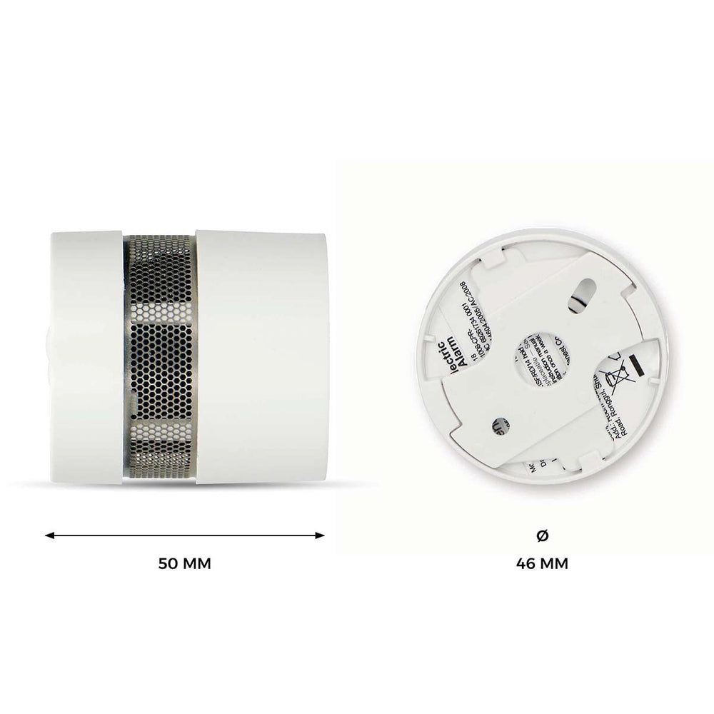 Deze kleine rookmelder heeft een diameter van 1,8 inch en wordt geleverd met een bodemplaat, schroeven en pluggen voor een eenvoudige en snelle montage. Je kunt hem het beste aan het plafond schroeven. Door het kleine formaat valt hij nauwelijks op. Tenzij hij natuurlijk afgaat.