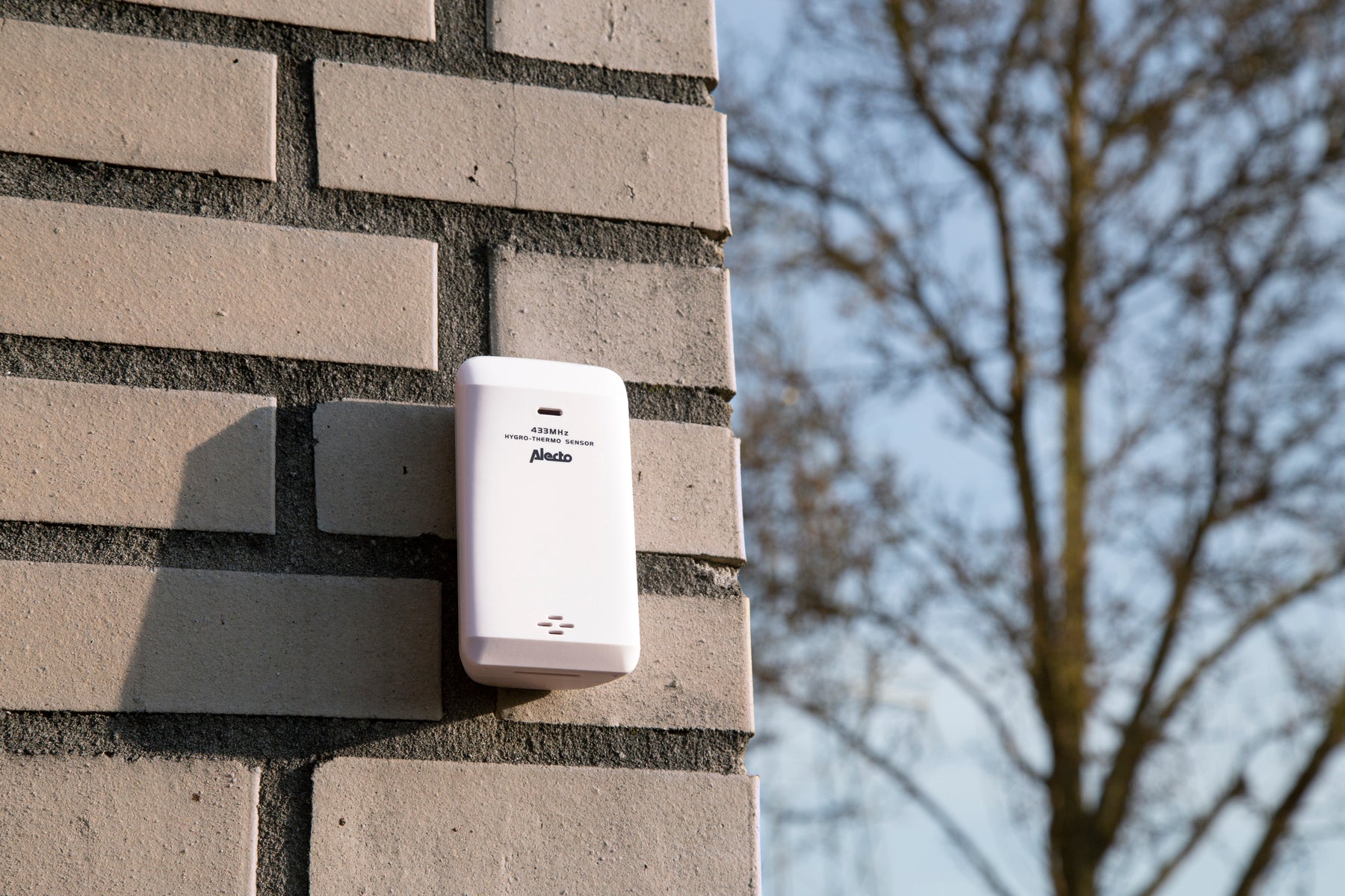 - De buitensensor is weliswaar geschikt voor plaatsing buiten maar is niet waterdicht. Plaats deze unit dus op een voor regen en wind beschutte plaats.