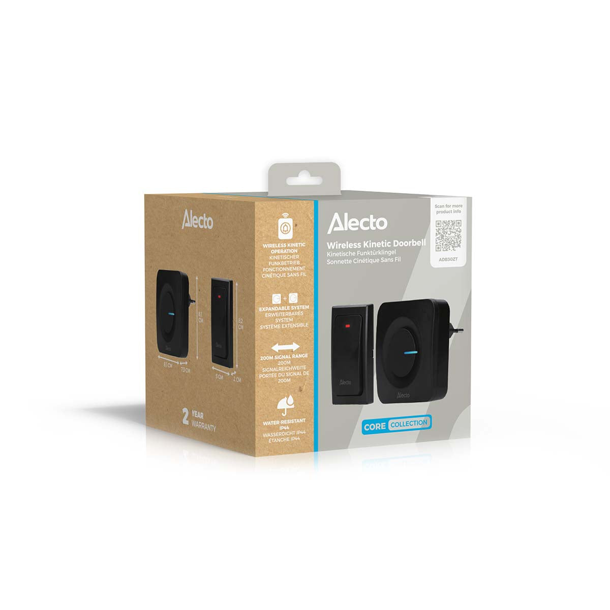 De Alecto ADB30ZT is een draadloze kinetische deurbel waarbij je geen kabels hoeft te trekken. Deze deurbel werkt zonder batterijen, doordat de belknop op kinetische energie werkt. Door de knop in te drukken wordt er energie opgewekt waardoor de deurbel geen batterijen nodig heeft en milieuvriendelijk is.
