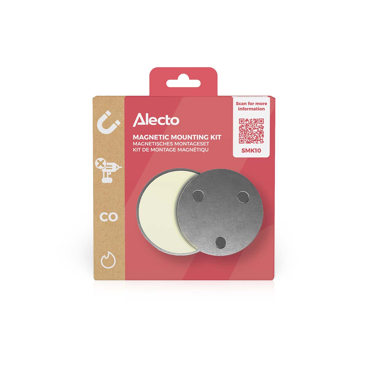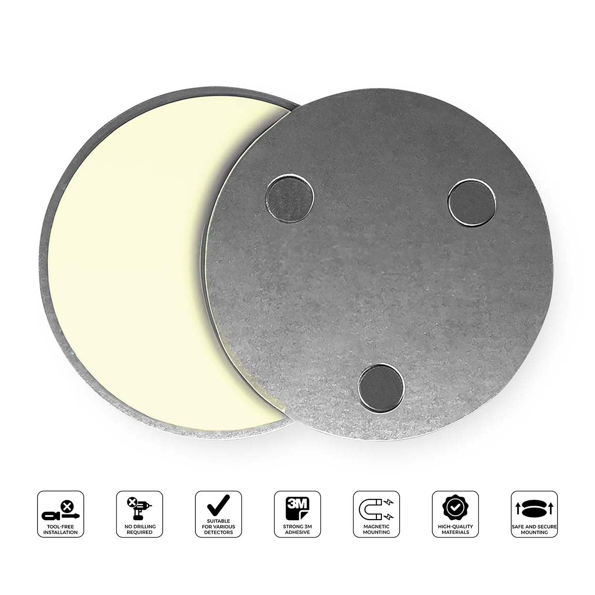 Met deze magnetische montageset monteer je een rook- of koolmonoxidemelder snel en stevig. Je hoeft niet te boren en voorkomt schade aan muren en plafonds. De ronde vorm past op de meeste rook- en CO-melders.