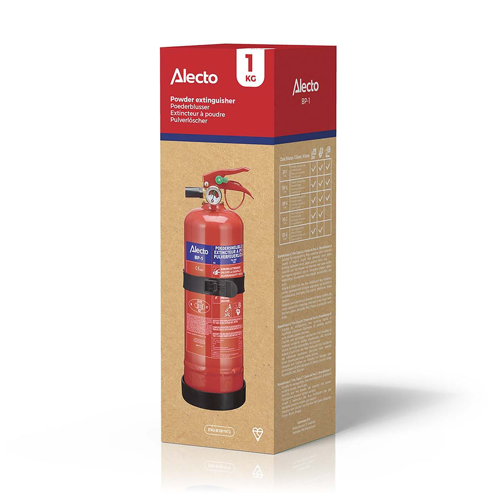 In het geval van een brand blust de Alecto BP-2 brandblusser deze snel en doeltreffend. Poederblussers staan er om bekend dat er maar weinig brandhaarden tegen bestand zijn. Of dat nu een vaste stof, een vloeistof of een gas is: deze brandblusser is er voor de noodgevallen waar een brand snel moet worden geblust en de gevolgschade weinig van belang is. Een apparaat voor noodgevallen dus. De BP-2 brandblusser is direct en snel te gebruiken en de bediening is heel eenvoudig. Dat is nodig: want tijd om de handleiding door te nemen heb je vast niet als het onverhoopt ooit zo ver komt Er is een Nederlands-, Duits- en Franstalige handleiding te vinden op de blusser.