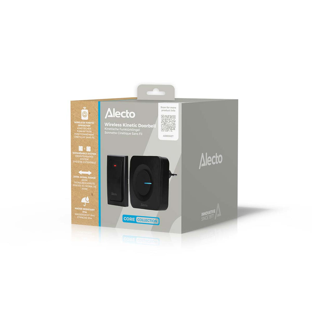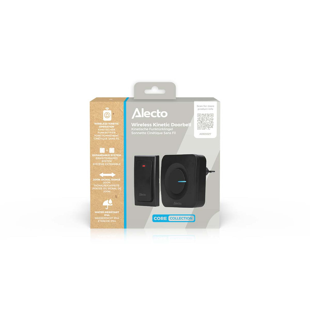 Alecto ADB30ZT - Draadloze deurbel zonder batterijen, zwart