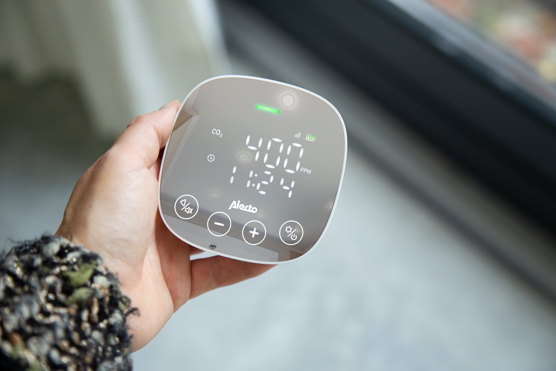 De Alecto AQ30 CO2 meter is een professionele luchtkwaliteitsmeter die specifiek de kooldioxideconcentratie (CO2) in de lucht meet. Het CO2-gehalte is een goede indicatie van de luchtkwaliteit in huis. En een graadmeter voor goede ventilatie in ruimtes waar mensen aanwezig zijn. Een goede luchtkwaliteit is belangrijk voor onze gezondheid en welzijn. Met deze CO2 meter krijg je inzicht in deze luchtkwaliteit en weet je wanneer je stappen moet ondernemen. Ideaal voor het monitoren en creëren van een gezonde binnenlucht in huis, op school of op het werk.