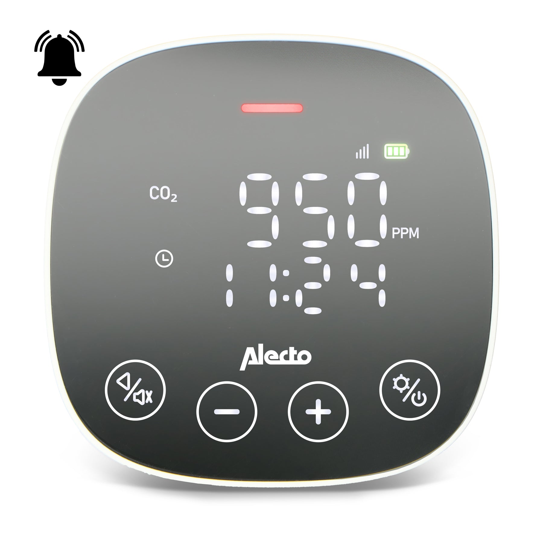 Op het LCD scherm van de Alecto AQ30 is direct het actuele CO2-gehalte af te lezen. De handige stoplicht kleurindicator maakt het dat de waarden makkelijk geïnterpreteerd worden. Groen (alles in orde), oranje (verbetering mogelijk) of rood (ongezond hoog). Als het koolstofdioxide gehalte te hoog is klinkt er een alarmsignaal. Je kunt zelf instellen wat de ondergrens en bovengrens is, dus wanneer de LED-indicator groen, oranje of rood wordt.
