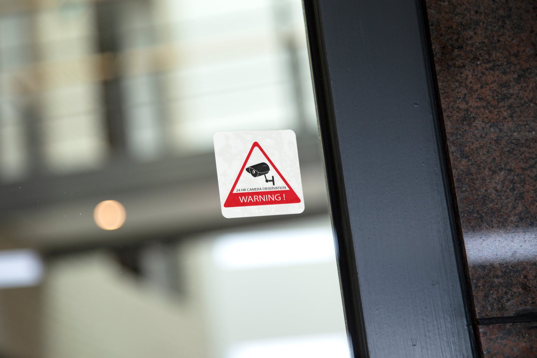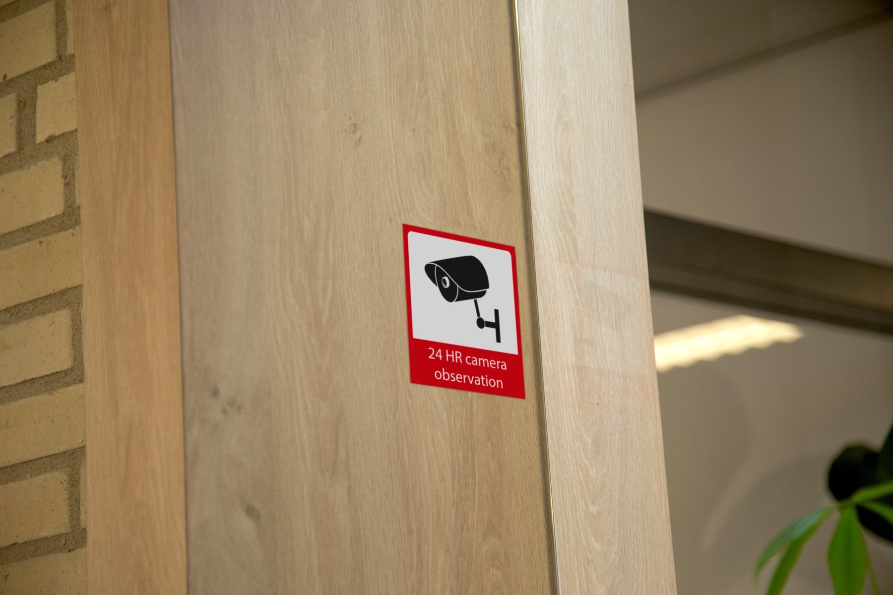 - 1 grote vierkante sticker met de tekst 24 HR camera observation