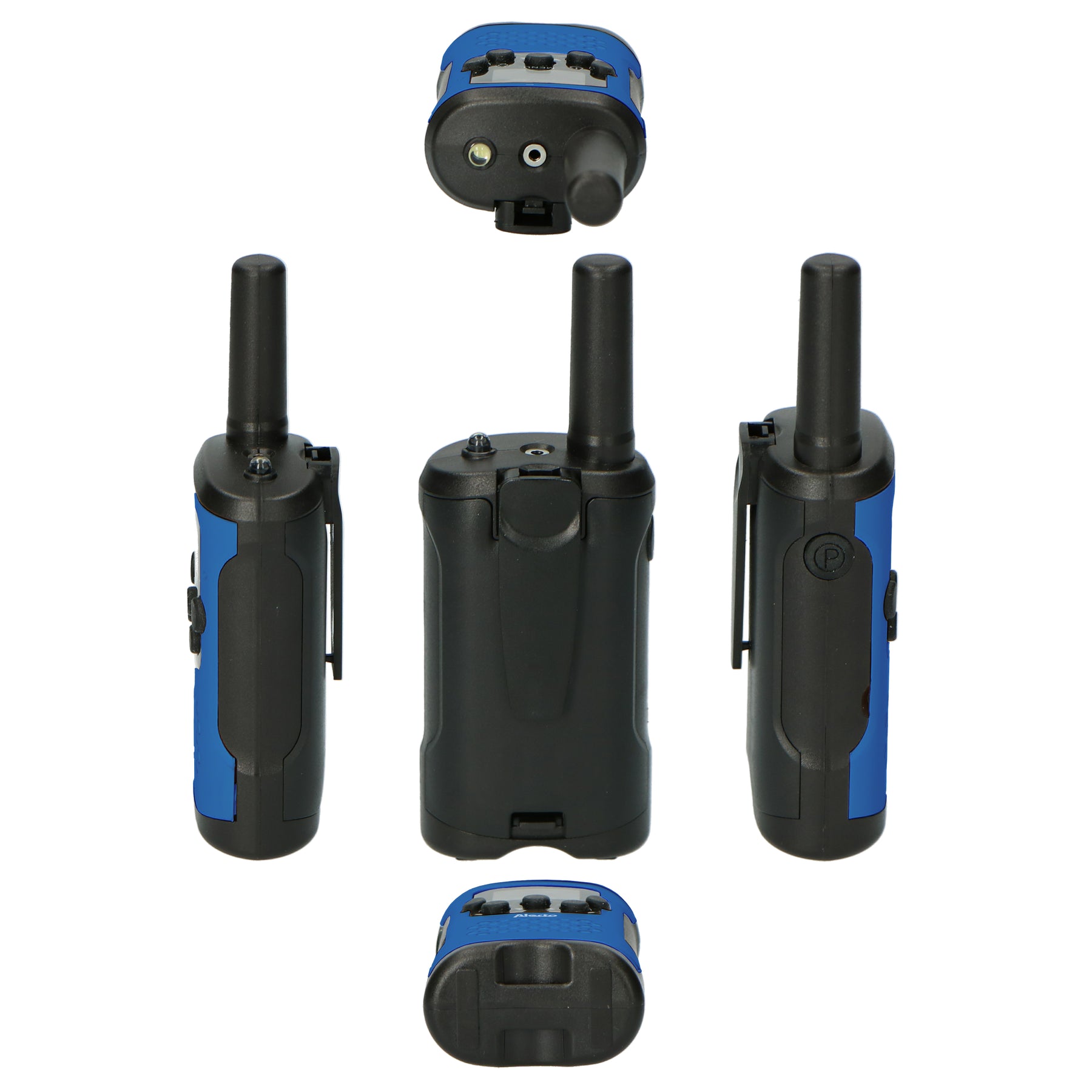 Deze walkie talkies zijn eenvoudig te gebruiken door per walkie talkie 3 AAA batterijen te plaatsen. Deze batterijen zijn eenvoudig te vervangen zodra leeg. Deze outdoor walkietalkies hebben een lange stand-by tijd van ongeveer 24 uur. Hierdoor kan je zo goed als de hele dag met deze walkie talkies aan de slag.