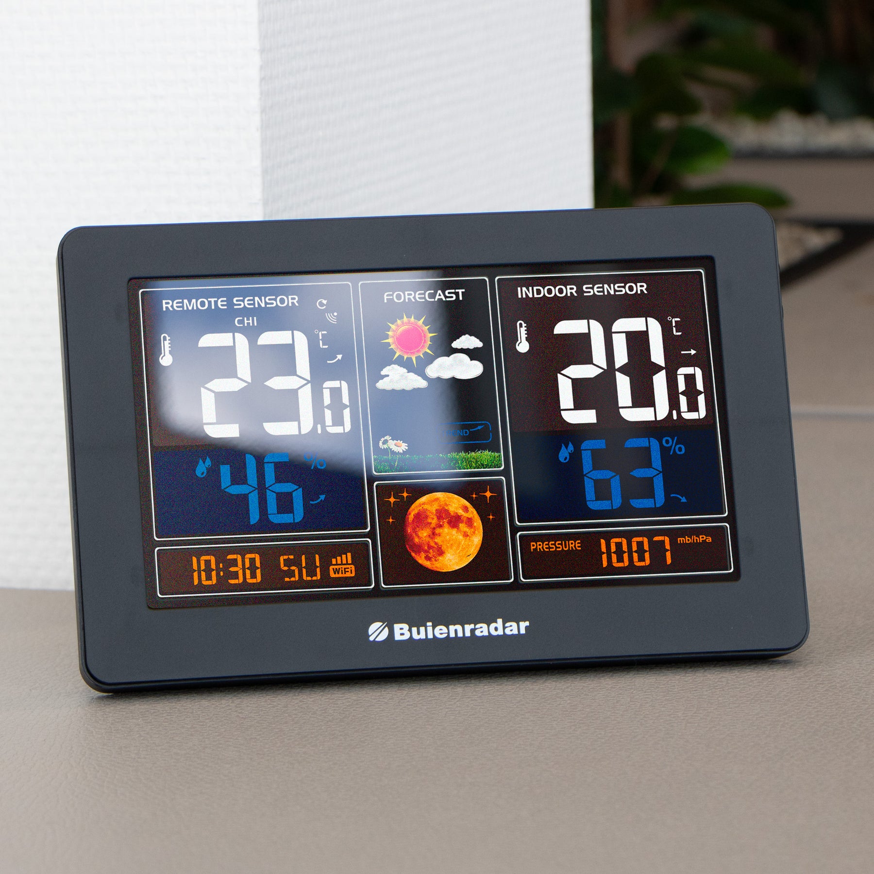 De Buienradar BR900 is een 3 in 1 wifi weerstation met draadloze buitensensor en app besturing. Dit weerstation is voorzien van een wifi verbinding en heeft 3 sensoren op de binnen- en buitenunit. Zo krijg je direct inzicht in actuele, lokale weersomstandigheden. Alle waarden zijn af te lezen via het kleurenscherm en de Smart Life app op je telefoon, tablet of laptop. In de Smart Life app kun je ook tal van andere slimme producten koppelen. Laat slimme producten samen werken in geautomatiseerde scenario’s.