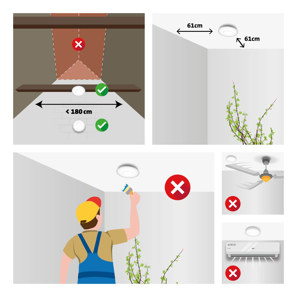 Monteer deze rookmelders eenvoudig op het plafond met het meegeleverde montagemateriaal. Een losse bodemplaat voor makkelijke en snelle montage, schroeven en pluggen zijn meegeleverd. Wil je het nog eenvoudiger, zónder het hoeven boren van gaten, maak dan gebruik van de optionele magnetische montage sets (typenummer MK-2).
