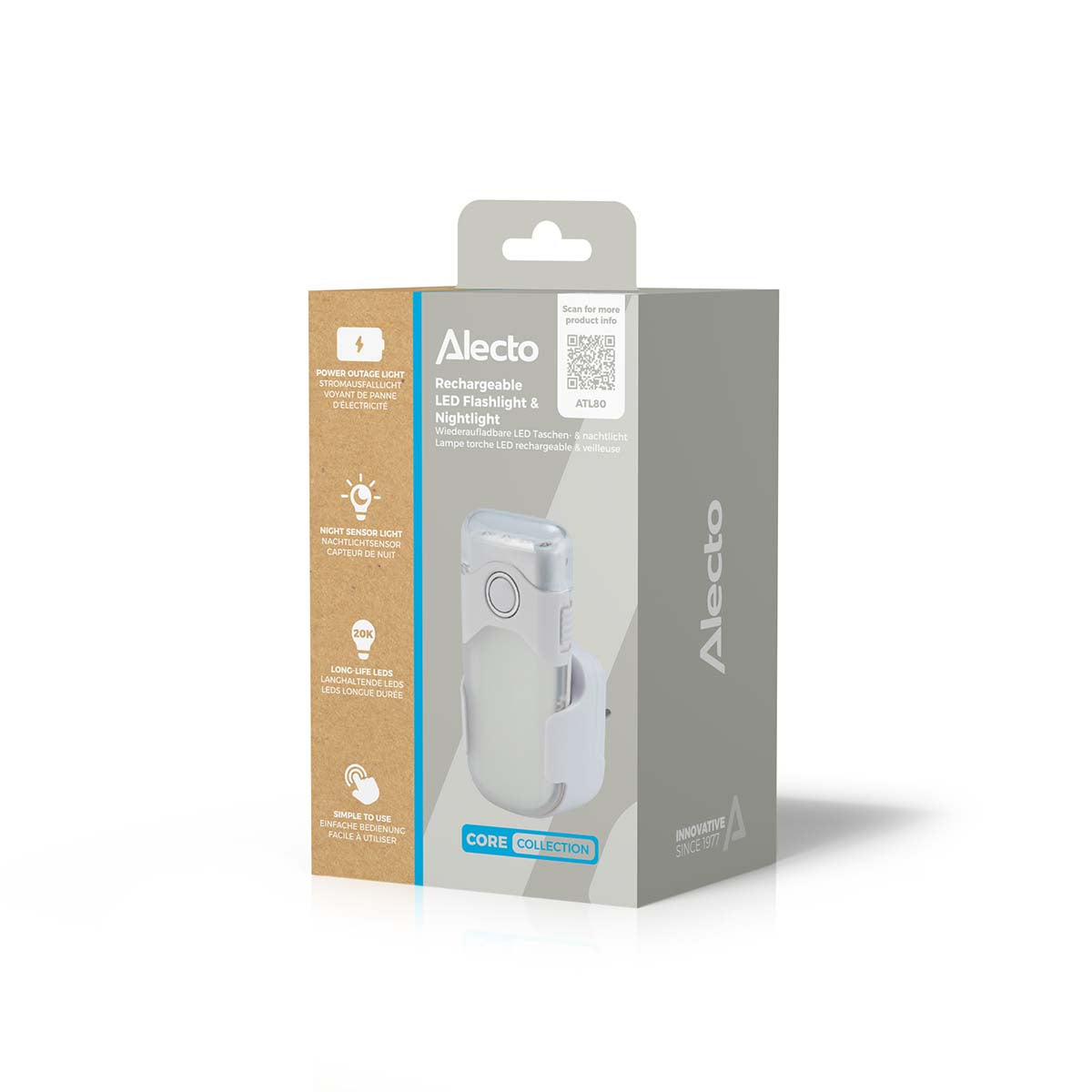 - De houder is tegelijk de oplader, waardoor je noodverlichting altijd klaar is voor gebruik.