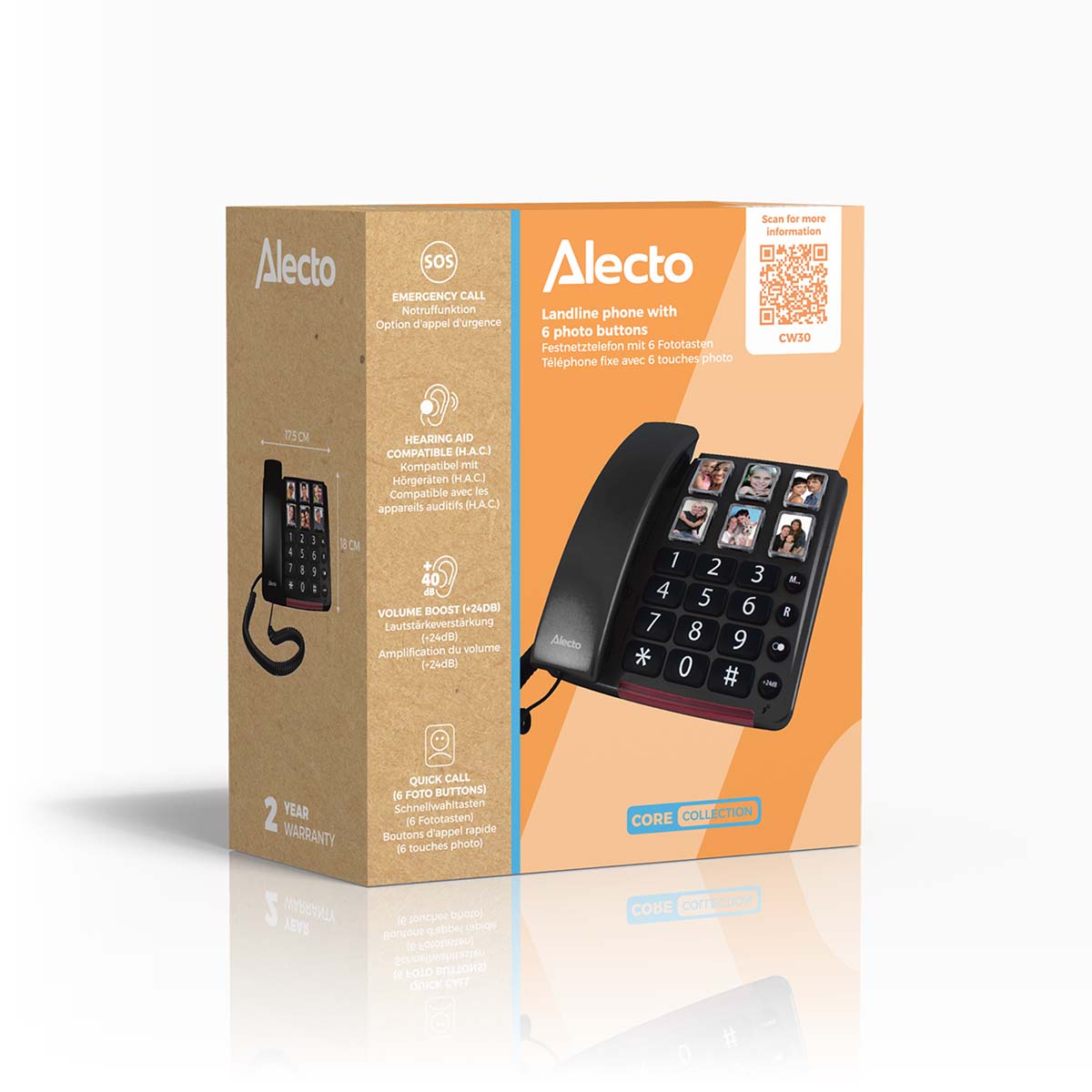 Ontdek de Alecto CW30, de praktische vaste huistelefoon met extra grote toetsen en fototoetsen, speciaal ontworpen voor wie op zoek is naar gemak, duidelijkheid en veiligheid bij het bellen. Of het nu gaat om jezelf, een ouder familielid of iemand die wat minder goed ziet of hoort: met deze telefoon bel je vertrouwd, snel en zorgeloos. Dankzij de zes fototoetsen met ruimte voor een herkenbare foto, bel je in één druk direct met je dierbaren. De CW30 combineert gebruiksvriendelijke bediening met moderne functionaliteiten zoals een extra luid gespreksvolume (+24 dB), een belsignaal dat niet te missen is én een handig knipperend lampje bij inkomende oproepen. Deze senioren telefoon is geschikt voor zowel neerzetten als wandmontage, en ideaal voor thuisgebruik.