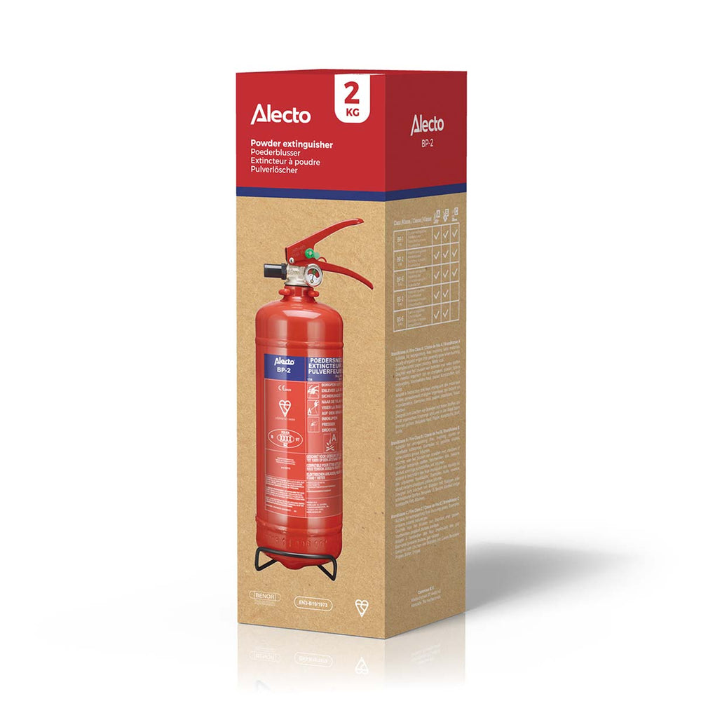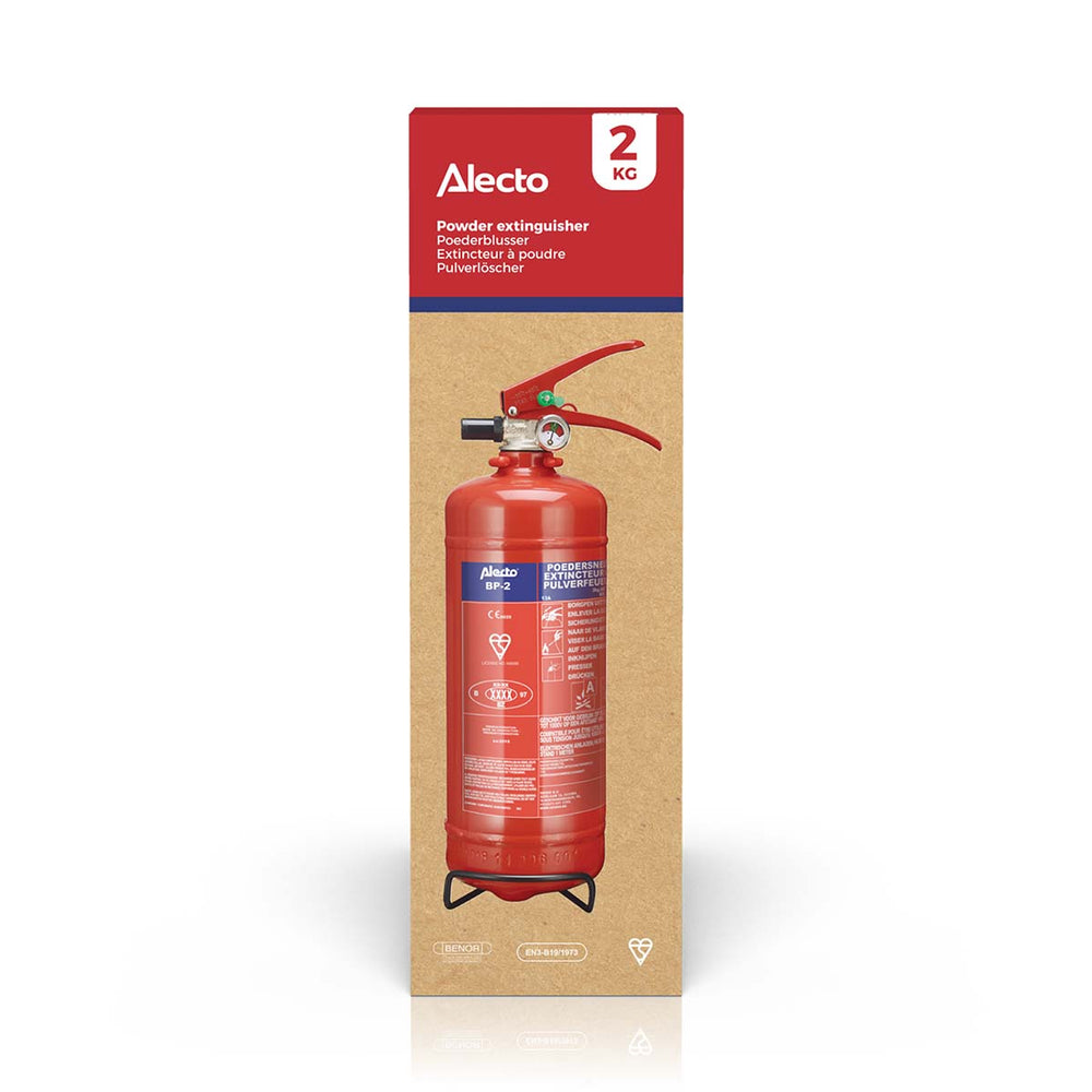 Soms maken we producten waarvan we hopen dat je ze nooit echt zult hoeven gebruiken. Onze Alecto BP-2 brandblusser is zo'n product. Deze poederbrandblusser met 2 kilogram inhoud zou iedere boot-, caravan- of werkplaatseigenaar binnen handbereik moeten hebben. Voor het geval dat. Maar hij is ook ideaal voor vervoer in een auto. Wist je dat je in steeds meer Europese landen een brandblusser verplicht aan boord moet hebben? Dat geldt bijvoorbeeld als je een (huur)auto rijdt in België met een Belgisch kenteken. En in landen als Griekenland, Turkije en Polen geldt de brandblusserverplichting zelfs voor iedereen.