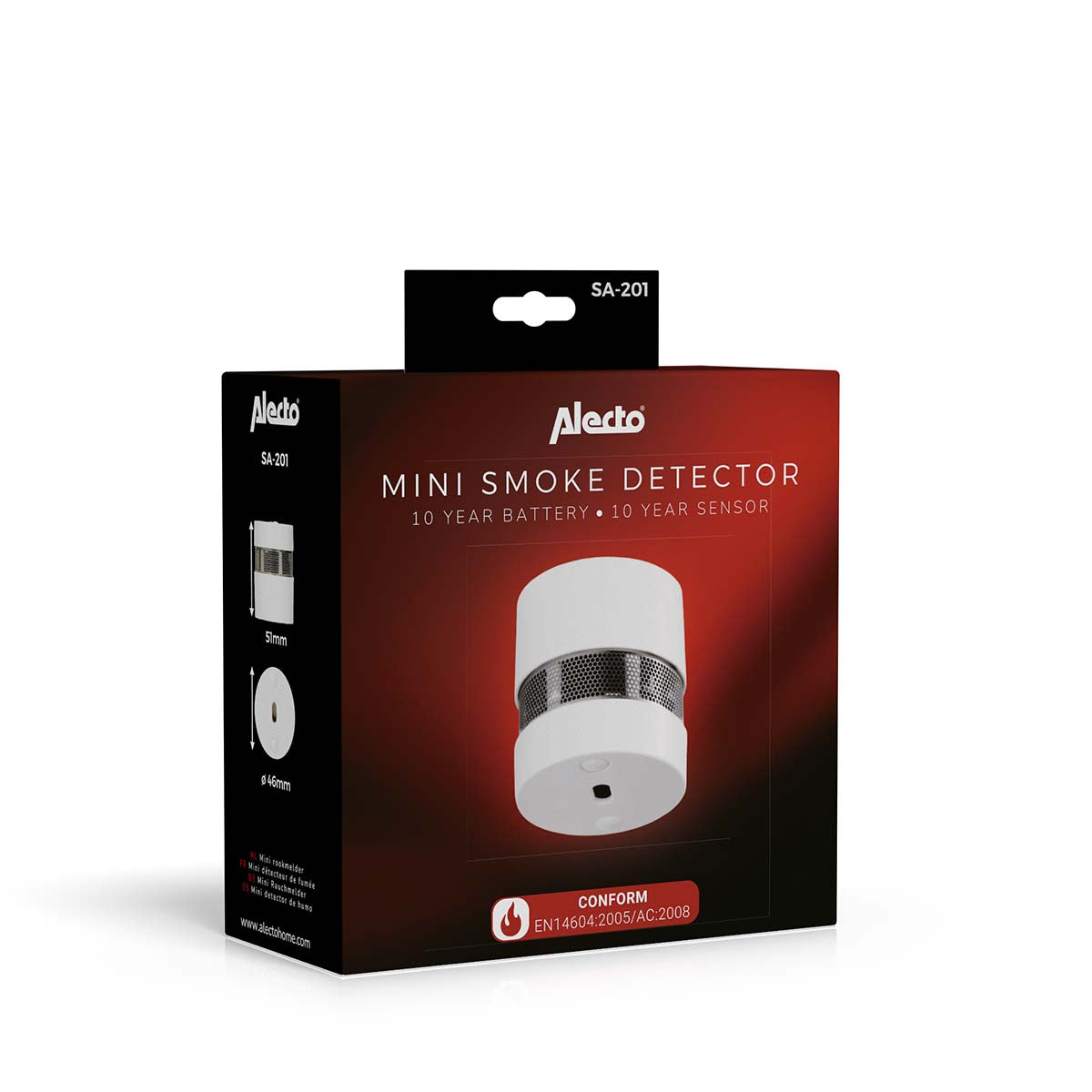 De SA-201 mini rookmelder is compact van formaat en past gemakkelijk in elke ruimte.
