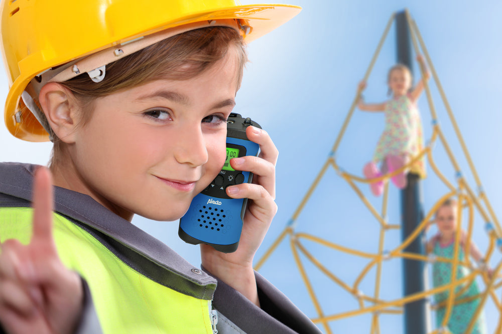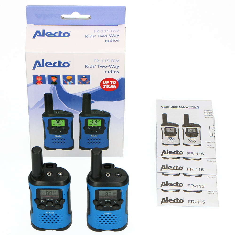 Alecto FR-115BW - Set van twee walkie talkies voor kinderen, tot 7 kilometer bereik - blauw/zwart