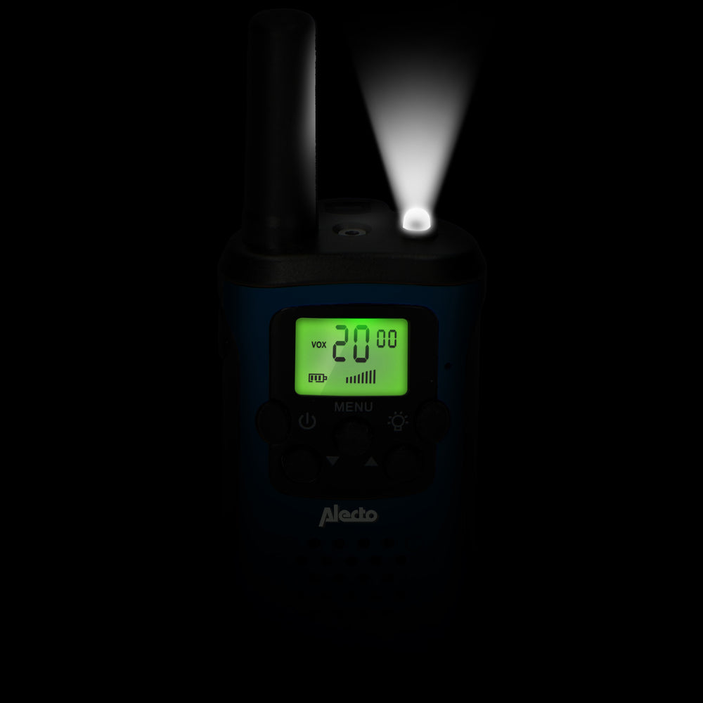 Alecto FR-175BW - Set van twee walkie talkies, tot 7 kilometer bereik, blauw/zwart