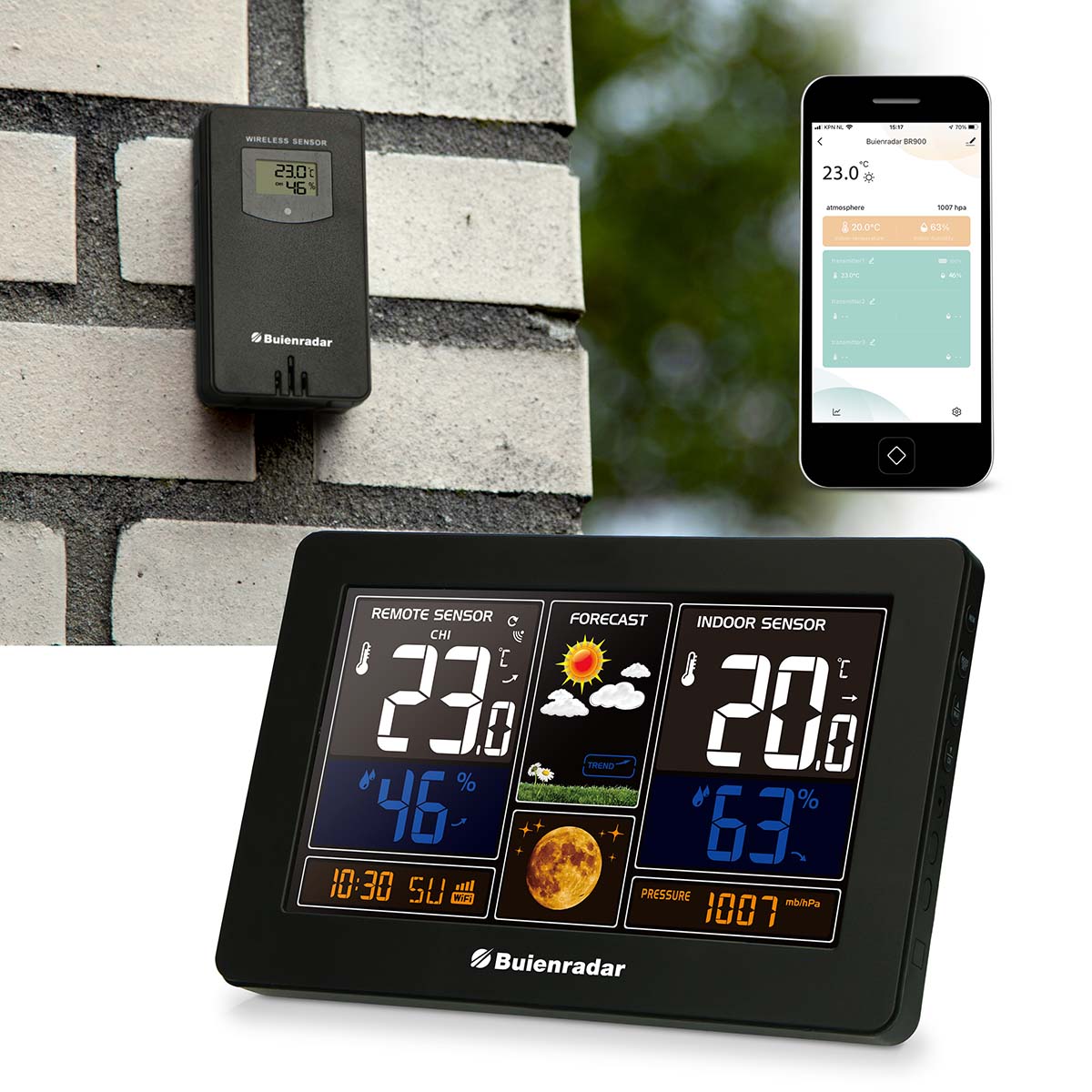 De Buienradar BR900 is een 3 in 1 wifi weerstation met draadloze buitensensor en app besturing. Dit weerstation is voorzien van een wifi verbinding en heeft 3 sensoren op de binnen- en buitenunit. Zo krijg je direct inzicht in actuele, lokale weersomstandigheden. Alle waarden zijn af te lezen via het kleurenscherm en de Smart Life app op je telefoon, tablet of laptop. In de Smart Life app kun je ook tal van andere slimme producten koppelen. Laat slimme producten samen werken in geautomatiseerde scenario’s.