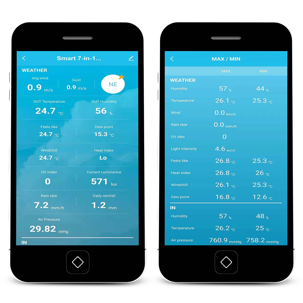 De buitenunit is voorzien van de meeste sensoren en plaats je buiten, het liefst in een vrije omgeving, zodat sensoren niet gehinderd worden door de omgeving. Plaats de unit bijvoorbeeld niet naast een muur, omdat dit effect kan hebben op bijvoorbeeld de windsnelheid, windrichting en temperatuur. De buitensensor deelt de geregistreerde data draadloos met je binnenunit en de app die uit te lezen is op je smartphone, tablet of computer. Het bereik van de draadloze buitensensor bedraagt 30 meter, al zal dit in open veld en bij het ontbreken van obstakels groter zijn.