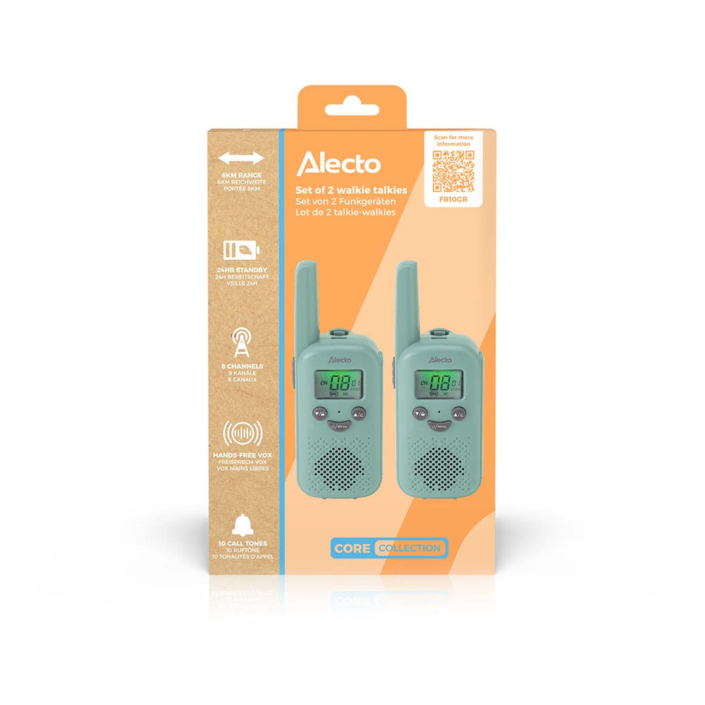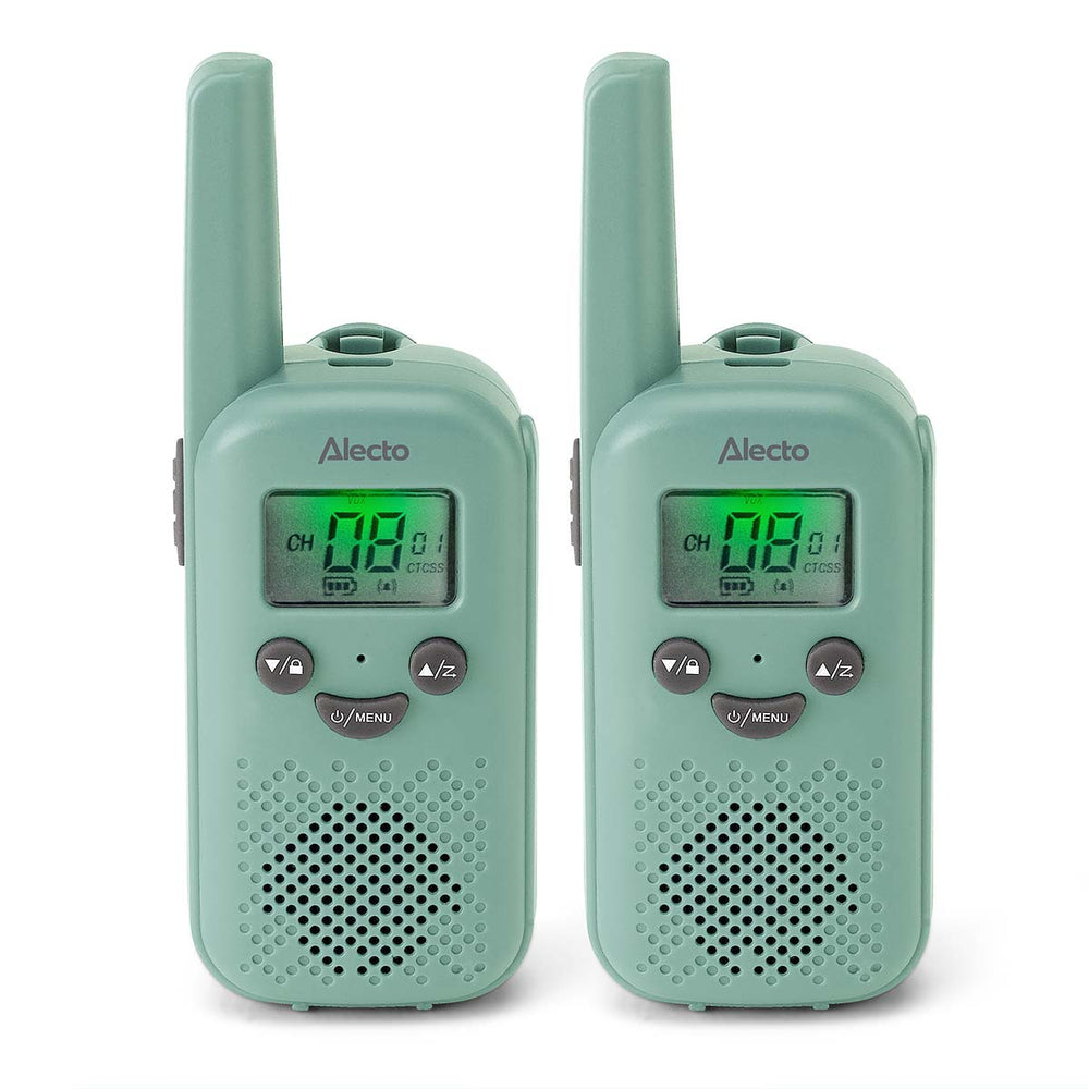 Alecto FR10GR - Set van twee oplaadbare walkie talkies voor kinderen - Bereik tot 6 kilometer en lange stand-by tijd tot 24 uur - Mintgroen - Blauw is nabesteld en wordt verzonden zodra het weer op voorraad is.