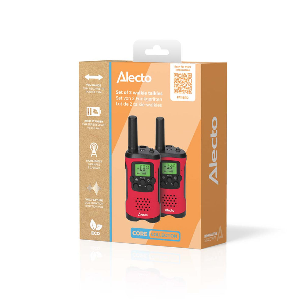 Alecto FR115RD - Set van twee walkie talkies voor kinderen, 7 KM bereik, rood/zwart