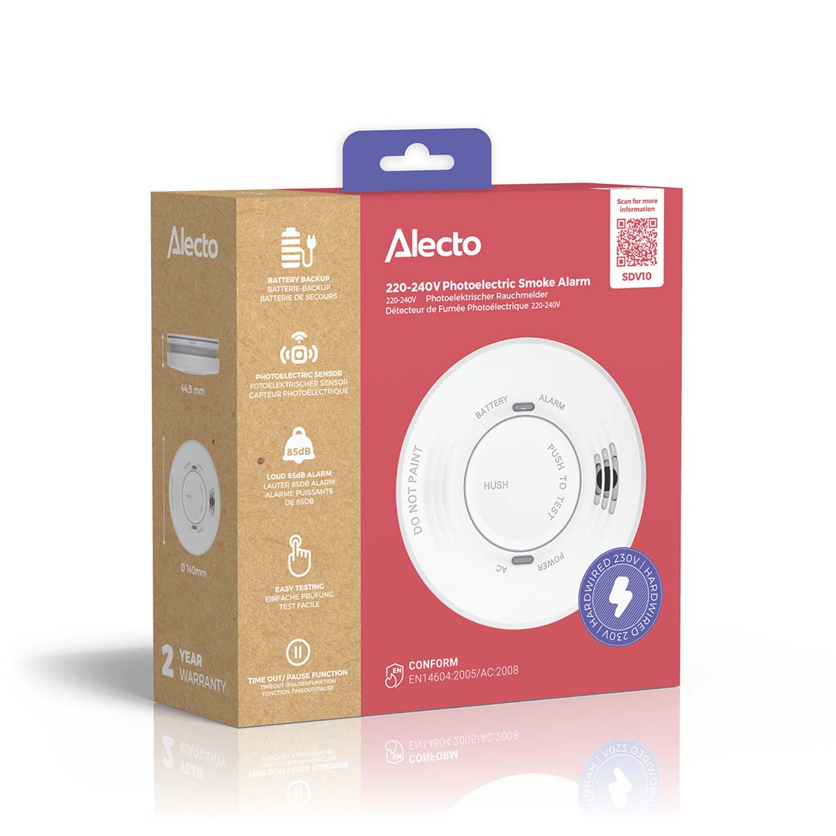 Zorg voor snelle en effectieve branddetectie met de Alecto 220–240V foto-elektrische rookmelder. Deze rookmelder op netstroom is ontworpen voor langdurige veiligheid en naleving van normen en biedt een snelle waarschuwing bij rook en brand. Ideaal voor zowel woon- als professionele omgevingen.
